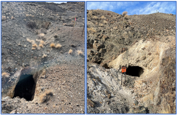 Photo 4: Old mine workings at the Dry Gulch Gold-Tungsten prospect