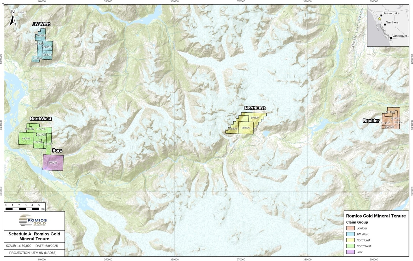 Toronto, Ontario – July 10, 2025 – Romios Gold Resources Inc. (“Romios Gold”) (TSX.V: RG) (OTC PINK: RMIOF) (Frankfurt: D4R) is pleased to announce that it has sold five claim blocks from its land package in the Golden Triangle region of northern British Columbia to Galore Creek Mining Corporation (“GCMC”).