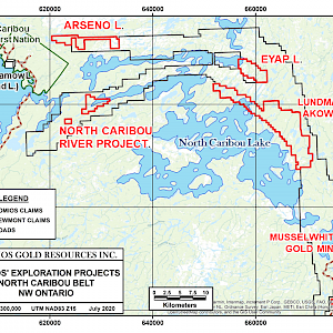 • 8 km NE of the road accessible North Caribou Lake First Nations community of Round Lake (a.k.a. Weagamow Lake).