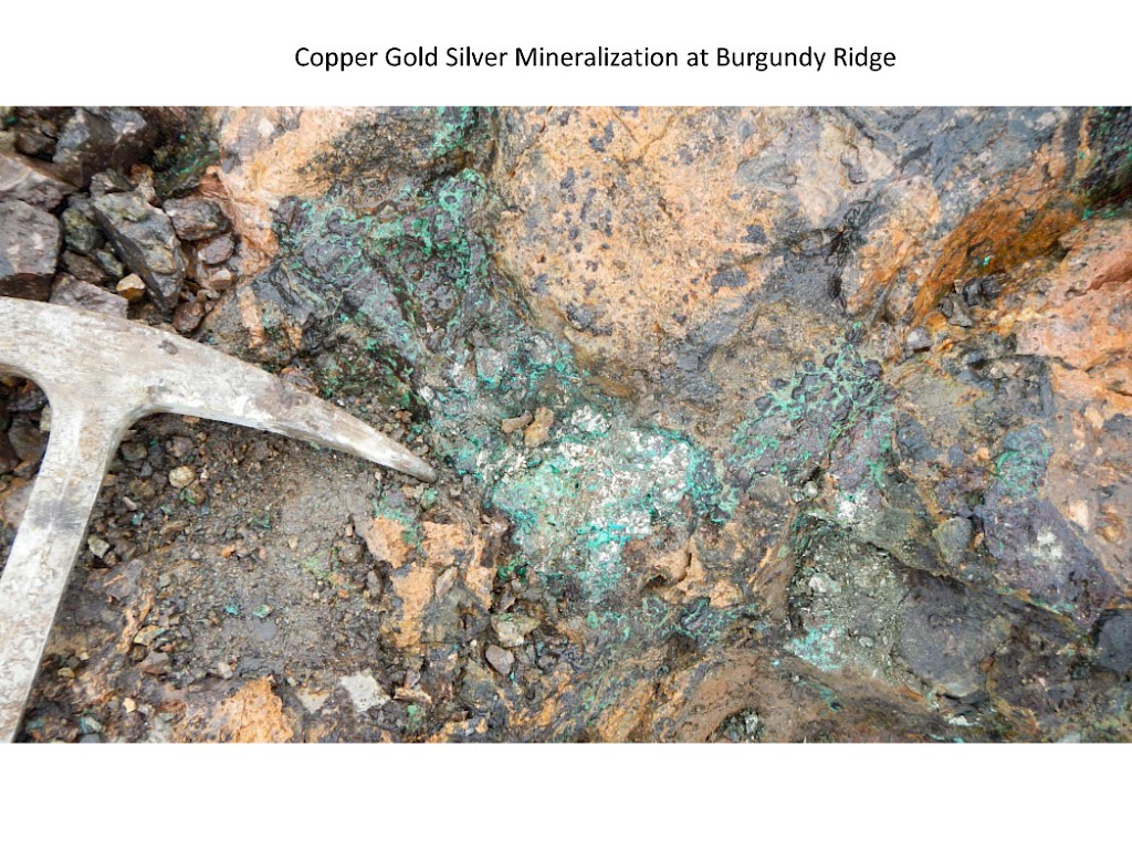 Picture of the whole mineralized zone [everything that is stained red is mineralized]